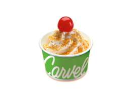 Carvel popularized various ice cream "novelty" items, such as the "Flying Saucer", a circular ice cream sandwich, the "Icy Wycy," a paper cone of sherbet on a stick, "Brown Bonnet" and "Cherry Bonnet," frozen vanilla ice cream on a sugar cone dipped in a sweet, waxy confection, the "Tortoni," a cup of vanilla ice cream covered with toasted coconut and topped with a maraschino cherry, and the "Lollapalooza," cylindrical ice cream on a stick covered with colored sprinkles, as well as the "Mamapalooza" and "Papapalooza."